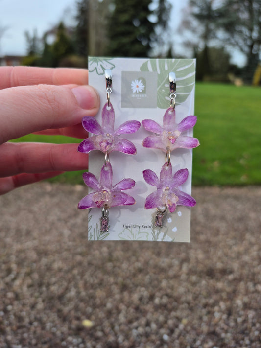 Dendrobium orchid double earrings