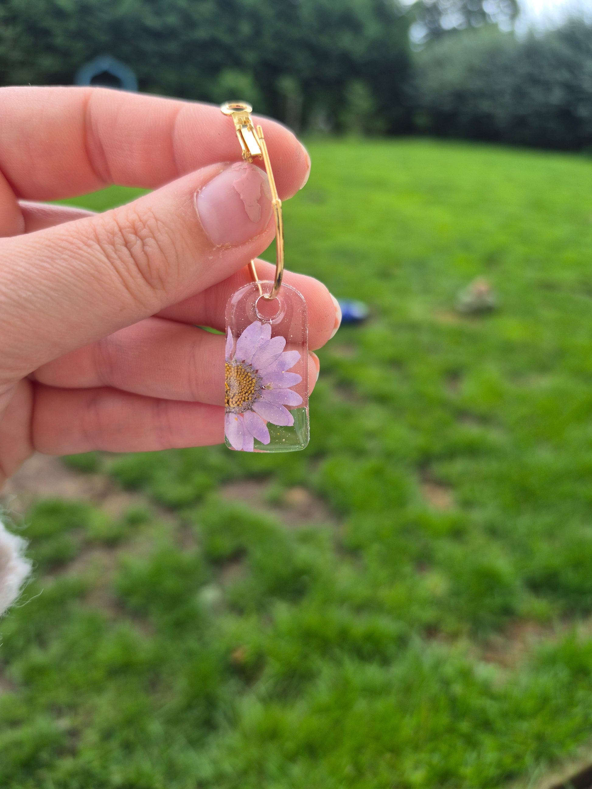 Daisy arch charm hoops made from resin available in pink, white, orange and lilac