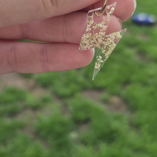 Lightening bolt floral resin hoop charms available in 4 colours; white, blue, purple and pink